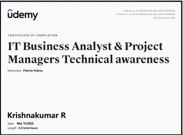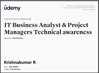 I am Krish, with 11+ years of experience as a Business Analyst, dealing Digitalization, Business Process Improvement and Automation. I am sharing my skills and projects to help you see what I can bring to your team.